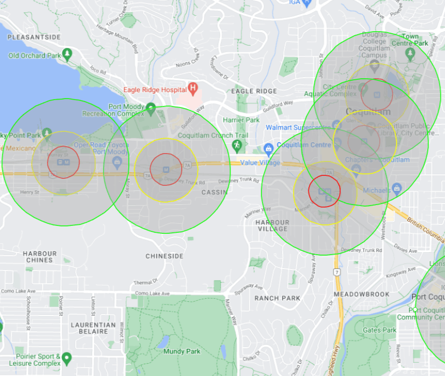 Transit-Oriented Development (TOD) Tier 2 & 3 zone near Coquitlam Center Skytrain Station.